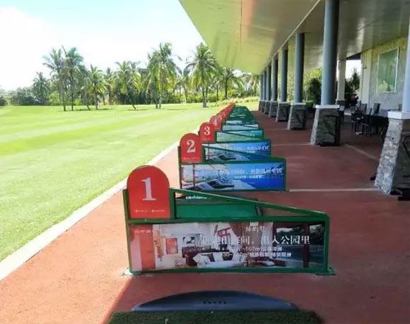 我们练习场设有16个打位,两个VIP练习室,果岭推杆切杆练习,沙坑练习,真草打位,还有五个练习球洞。
