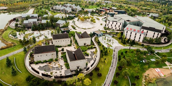 灞柳驿水上高尔夫练习场,位于浐灞国家湿地公园旁的西安灞柳驿新丝路文化体验基地内。