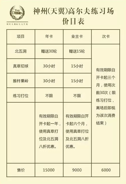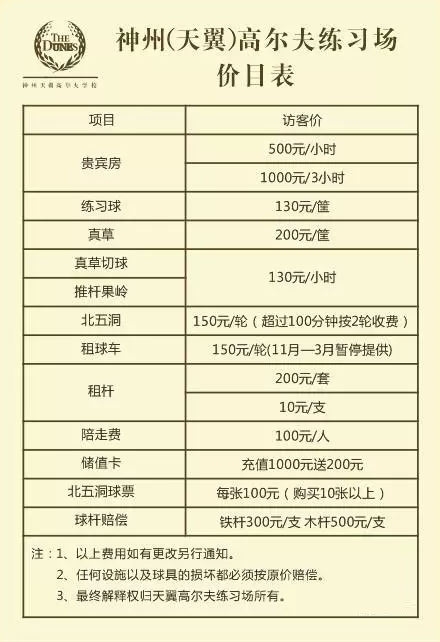 为迎接旺季,我们神州天翼高尔夫练习场价格有所调整,具体调整如下: