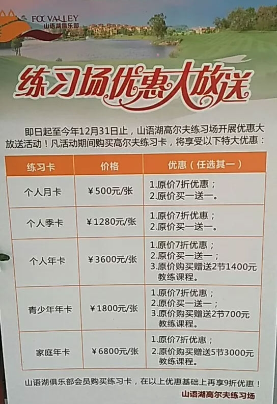 山语湖高尔夫练习场推出优惠活动,练习卡买一送一!