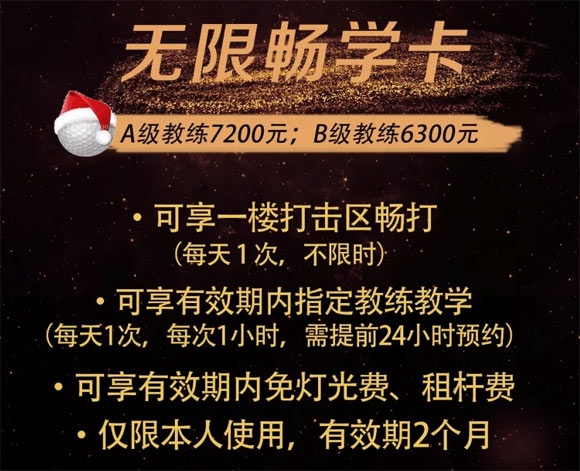 杭州江滨一号高尔夫冬季「无限畅学卡」6300元!