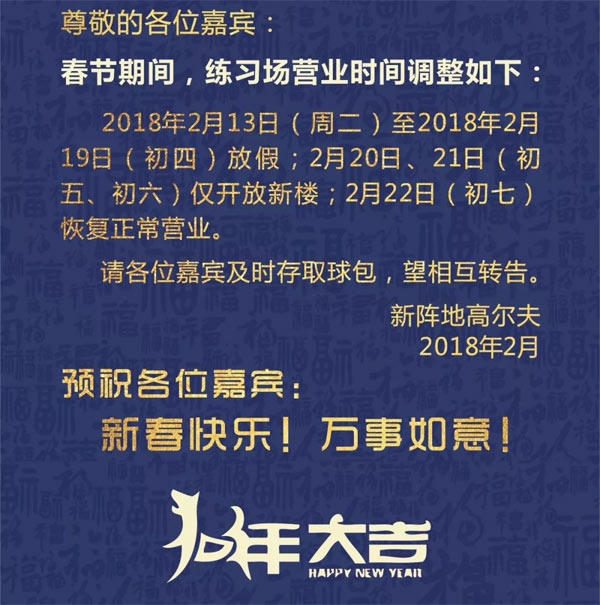 成都新阵地高尔夫练习场2018春节期间营业时间