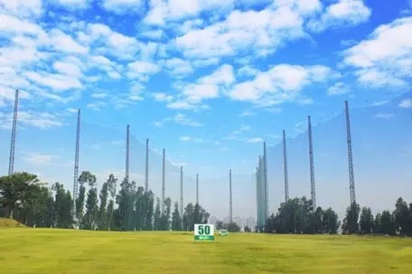 练习场占地面积3万平方米,分上下两层共32个打位,专供高尔夫爱好者练习挥杆以及接受专业培训。其中地面一层打位16个,地面二层全部为VIP会员提供独立的包间与舒适配套共15间包间,共16个打位。全场击球最远距离为275码,站在打台上,极目远眺感受蓝天与绿草的交融,尽享这里的雍荣与尊贵!