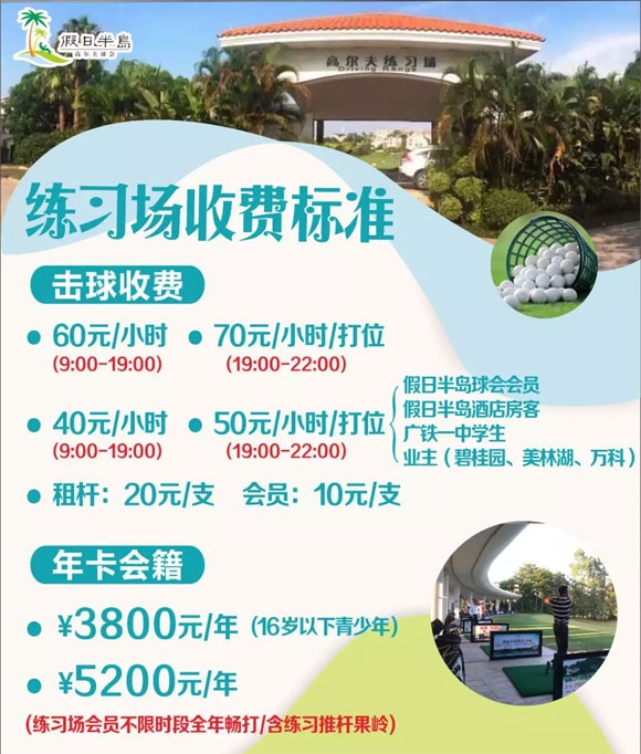 2、假日半岛会员、假日半岛酒店房客、广铁一中学生、碧桂园小学、幼儿园、业主(碧桂园、美林湖、万科):50元/小时/每个打位;