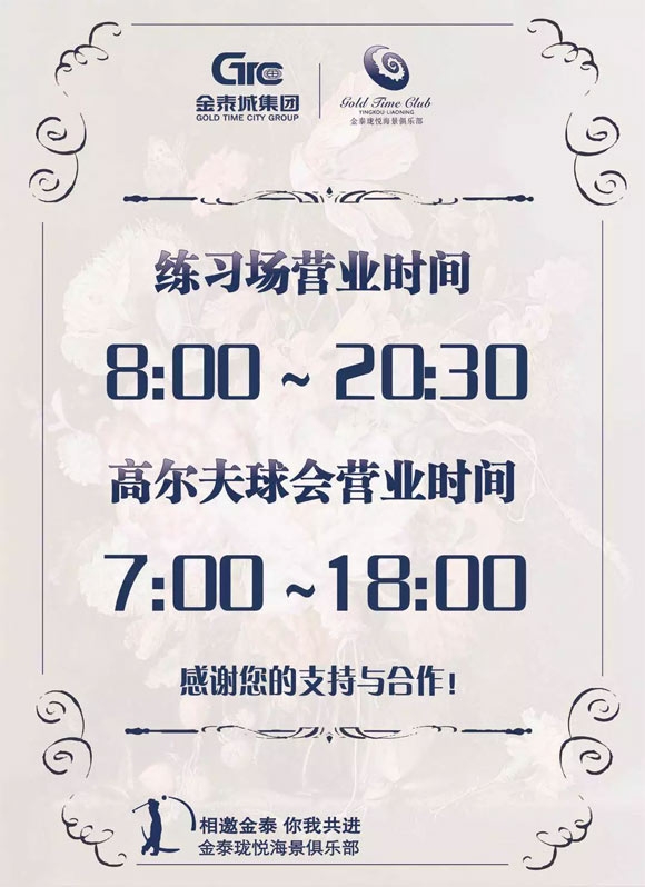 营口金泰珑悦海景俱乐部练习场时间更改啦~