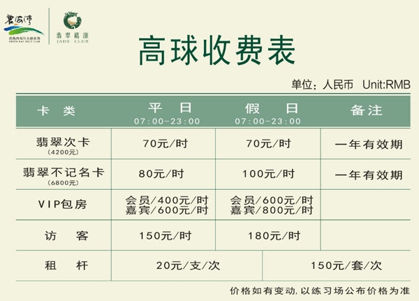 深圳碧海湾高尔夫练习场收费表