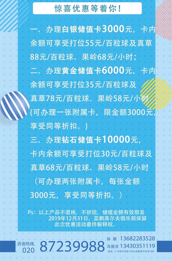广州蓝鹏高尔夫俱乐部八月惊喜优惠,等着你!