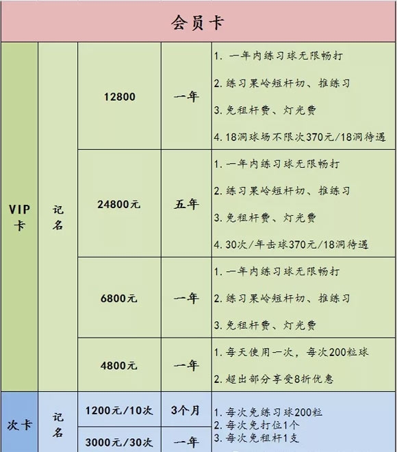 原练习场待遇不变,办卡可享受7折优惠(活动期间可享受双重折扣)