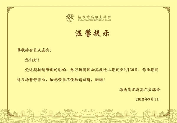 海南清水湾高尔夫练习场围网改造工期公告
