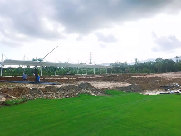 自开业以来,有不少客人反映练习场下午太晒,打球体验不好,三亚大学高尔夫练习场一直坚持顾客至上的服务原则,于是为了解决夕晒问题,本练习场自7月开始动工,打造专属您的”遮阳伞“,只为给您最舒适的打球体验。