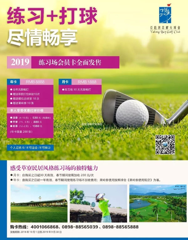 亚龙湾高尔夫球会2019年练习场年卡限量发售!
