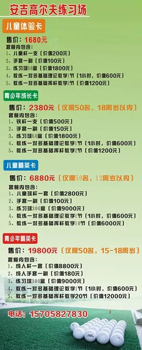 1680元/张 浙江安吉高尔夫练习场儿童体验卡