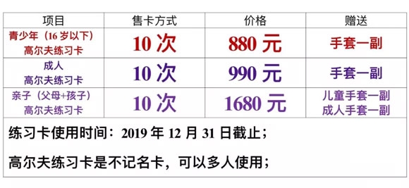 2019年辽宁省高协·雪松高尔夫学院推出“高尔夫练习次卡”: