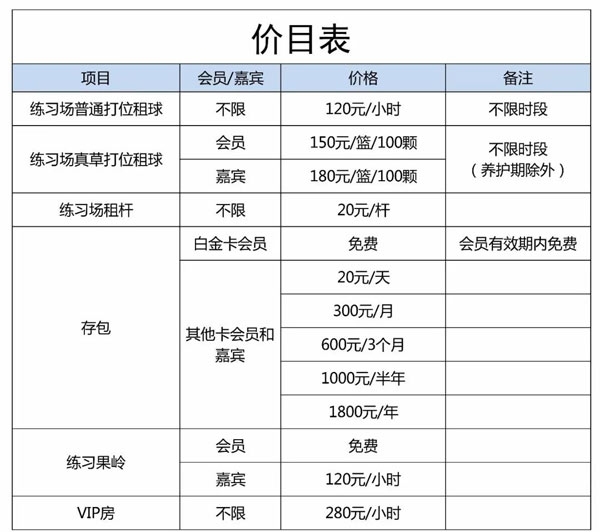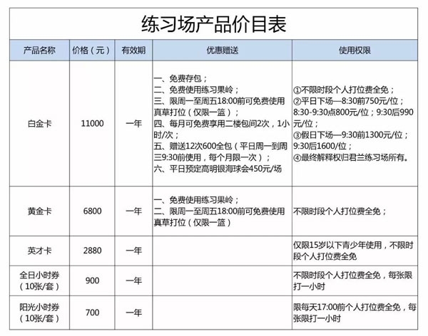 佛山君致君兰高尔夫练习场2019年最新价目表