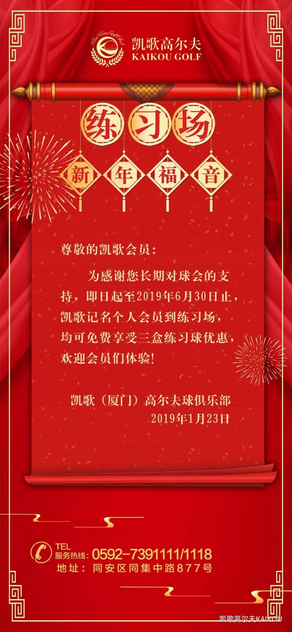 新年传福音!厦门凯歌高尔夫练习场新年有礼啦