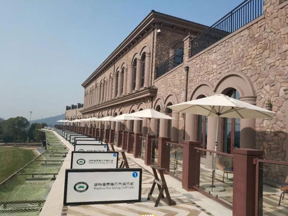 湖州温泉高尔夫俱乐部练习场分两层,共42个打位,一层全部采用国内少有的自动出球系统。环境优美,硬件设施齐全。