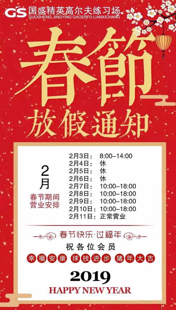 以下是国盛精英高尔夫练习场在春节期间的营业时间: