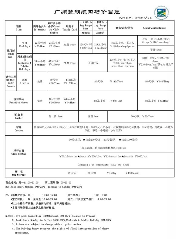 2019年4月5日(星期五)为清明节假期,麓湖练习场为08:00-23:00,并按节假日收费(阳光卡不可使用)。
