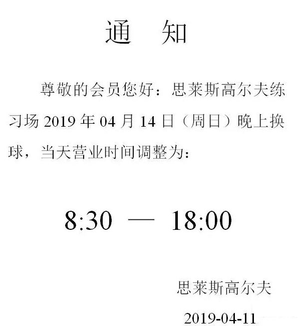 北京思莱斯高尔夫练习场4月14日营业时间调整