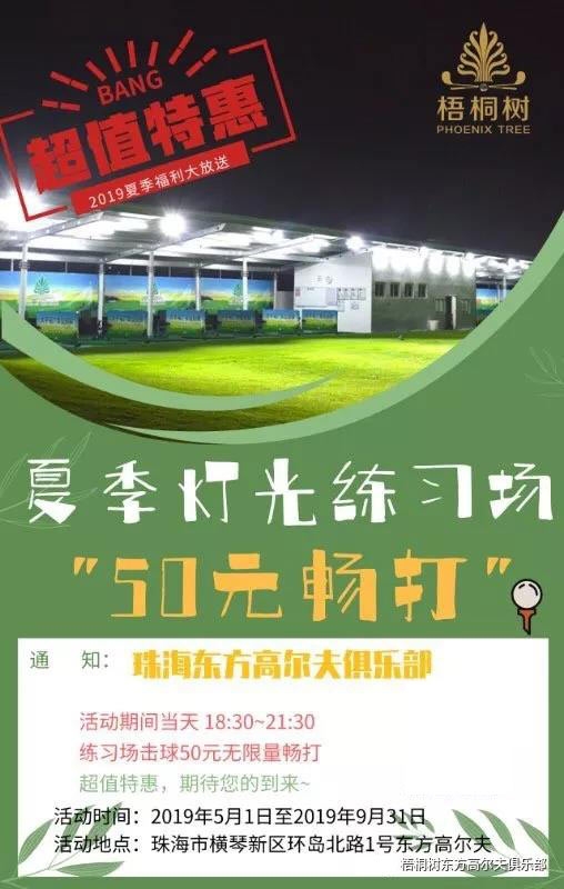 50元畅打!珠海东方高尔夫夏季灯光练习场特惠