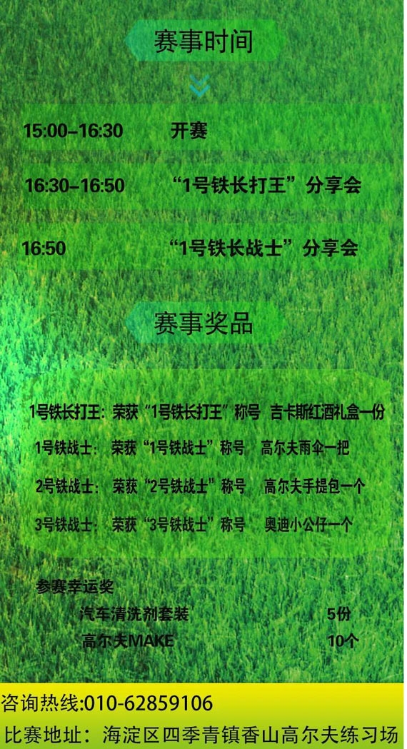 北京香山高尔夫练习场“1号铁”挑战赛将于本周六举行!