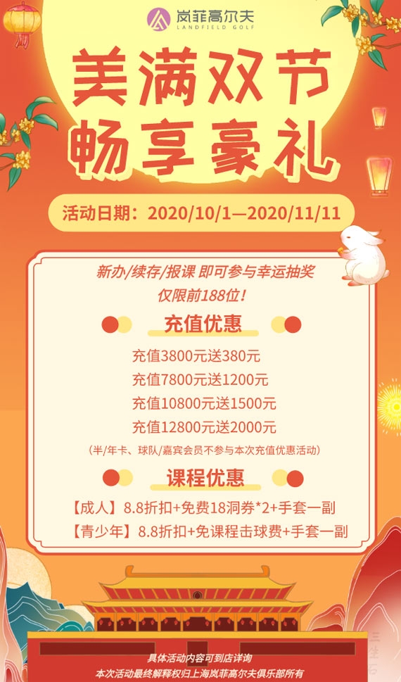 上海岚菲高尔夫俱乐部双节钜惠 一年一次,畅享豪礼!