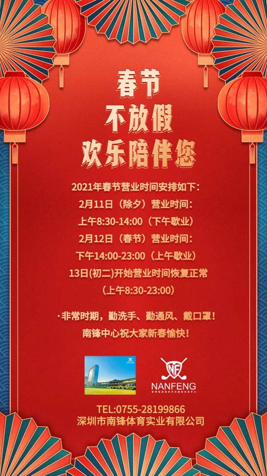南锋观澜湖高尔夫练习场春节不放假,欢乐陪伴您!