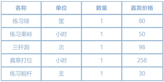 2、免费提供价值68元饮品、果盘,租杆免费使用,免费教练指导20分钟。
