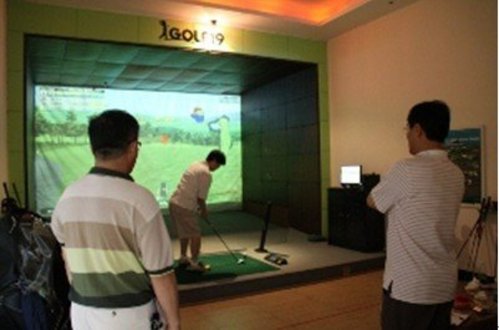 室内模拟高尔夫是采用目前效果最佳的弧形荧屏模拟场(三维立体8平米荧屏),综合了球场和练习场两方面的强大技术功能,由高清晰度投影机投射到耐冲击超大屏幕上,击球者站在屏幕前,足不出户在120个PGA高尔夫球场尽情畅打,尽情享受在全世界最知名的顶级高尔夫球场临场打球的乐趣,以及最逼真、最准确的高球飞行路线所带来的兴奋和激动。