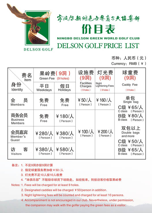 2011宁波启新高尔夫俱乐部价格表