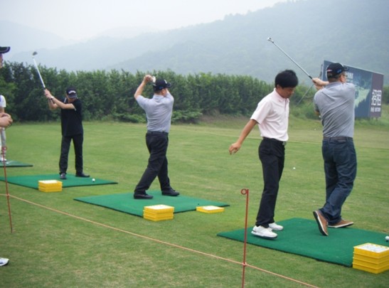 随着车队驶入玲珑山庄,高尔夫体验环节正式拉开了帷幕,在工作人员的带领下受邀客户兴致勃勃的前往体验场地,资深教练以其专业独到的高尔夫球经验进行实地教授。教练首先对高尔夫的站姿、握杆等基本技巧进行了生动详尽的阐述,随后进行了实地示范,细到一个手势,一个抬脚,都进行了全程教授。到场车主们悉心倾听,表现很投入,不时与教练交流,现场氛围高涨。
