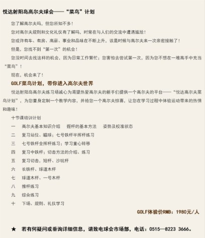 江苏射阳高尔夫练习场推出菜鸟计划