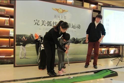 2011年11月26日,新城金郡特邀请了香树湾花园酒店泽屿高尔夫教学中心的专业老师们为业主和客户们讲解高尔夫这项运动的相关知识,并让现场的来宾体验一下高尔夫挥杆的乐趣。