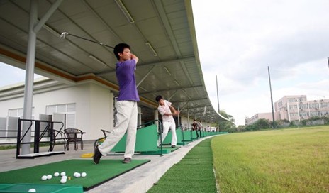 练习场旁还有高尔夫球场,18洞72杆国际标准比赛球场,由澳大利亚籍球场设计大师格翰·马殊担纲设计。