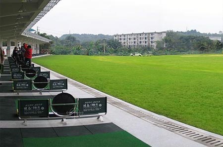 俱乐部所有打位全部采用美国制造的高级人造草皮打击垫,镜式隔离器在任何打击位均可看到自己的挥杆动作:长138米宽10米的大型真草打击区,球道、长草、果岭草坪维护专业,美国HENTER喷灌系统及JOHNDEERE专业剪草车,使得各环节均接近真实下场打球;由飞利浦公司设计的标准球场灯光照明系统使您在晚上亦可享受到打球的乐趣;大型游泳池、带桑拿间的更衣室可以让您在练球的同时拥有五星级的尊贵享受。