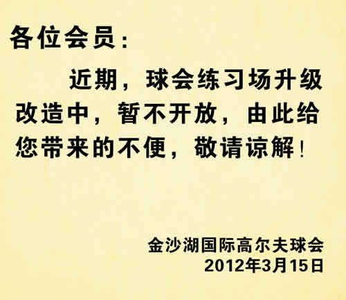 河南东方金沙湖高尔夫练习场因改造暂停营业