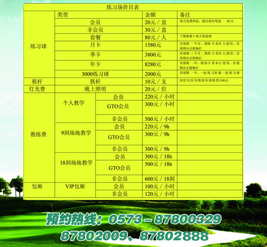 浙江海宁尖山高尔夫练习场收费价目表