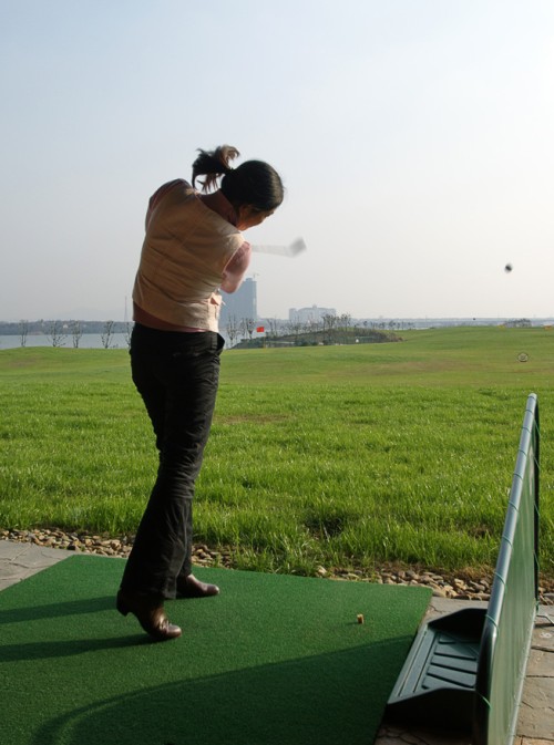 相比常见的水上游乐项目,这里的高尔夫练习场可能更有诱惑力。练习场位于卧龙湖西岸,在这里,草地、碧水、蓝天、白云构成一幅绝美的五彩画卷,在阳光的照耀下更加明艳动人。站在发球台上,屏气凝神,举起球杆用力挥出,目光随着白球高高飞起,划过一条抛物线,远远地落在草地上。对于第一次接触高尔夫的人,这是一种令人心跳的体验。专业的教练不厌其烦地在旁边一一指导:站立姿势,握杆方式,挥杆力度……练习场还有众多茶座供游客休息、观景,这样贴心的服务赢得了游客们的一致称赞。