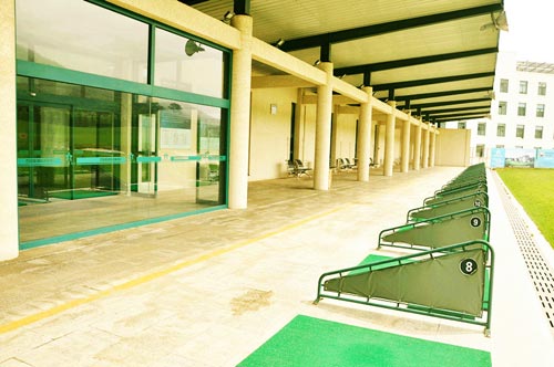 石岛高尔夫练习场占地近20000平方米,共32个打位。长230米的扇形打位南北朝向的设计,合理的避免了阳光的直射。球场仿真球道呈自然上升走势,球手能够清晰的看到球的落点。