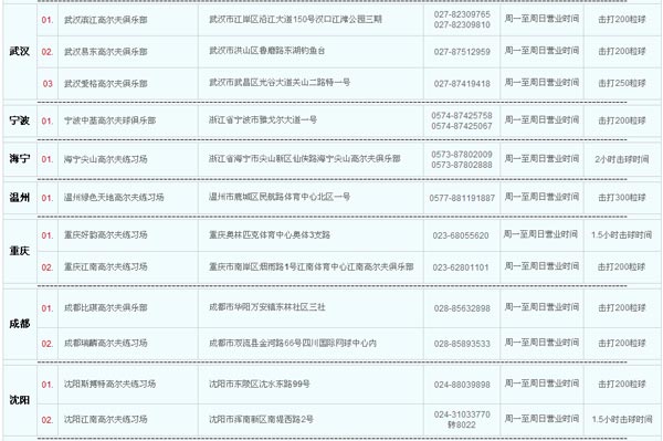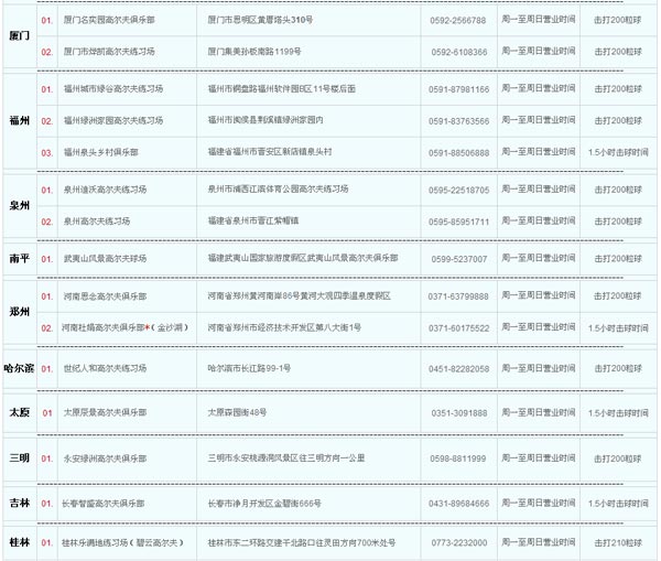 兴业银行黑/白金卡贵宾高尔夫练习场服务开放城市列表