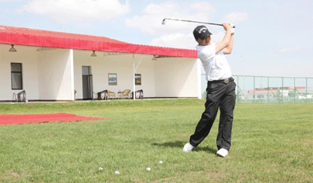 该项目位于满洲里市满西路东侧、南环路南侧,由北京金泰地产集团、北京太伟集团共同投资建设,球场占地约50亩,总投资1000万元, 2010年7月1日开工建设,由会所和练习场两部分组成。其中,会所建筑面积1000平方米,主要包括接待大厅、9间贵宾休息室、设备用房、洗球房等;练习场包括18个打位,长250米、宽100米的球场草地。