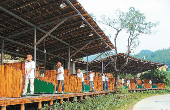 崇尚“绿色、古朴、自然、典雅”的场内的设计别出心裁,3个分区,10个房间,20道打击位,2个尊贵VIP包间,会所坐北朝南、长方形打位,有效地避免了太阳光、西北风对球手的干扰,一年四季随时可以欣赏到白色小球滑过天空的惬意和顽皮;灯光打位,让每个高尔夫之夜璀璨生光。
