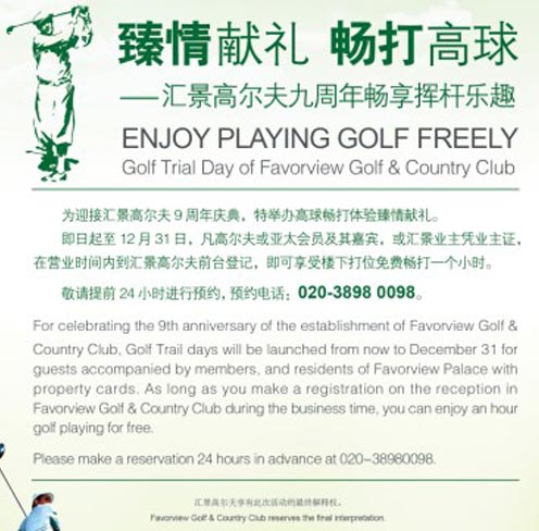 广州汇景高尔夫9周年庆举办免费畅打体验
