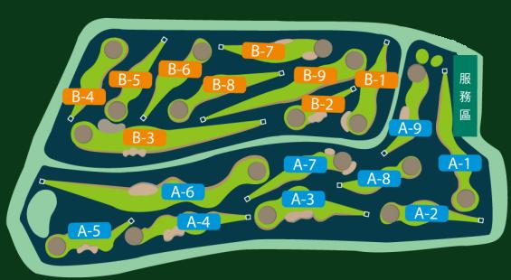 球场里,每区球场里规划出每洞30~90公尺,共九个不受干扰的活动空间,再配置改良过的果岭、沙坑、池塘、草坪、乱草区……等多元化构思,同样像置身于专业高尔夫球活动中。