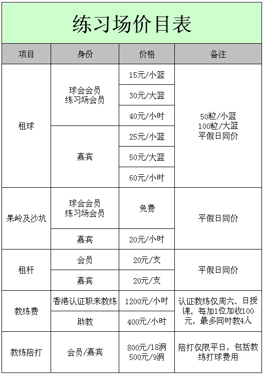 广州仙村国际高尔夫球会练习场打球价格表