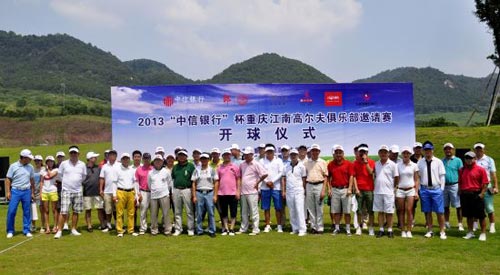 6月28日,热浪滚滚,由中信银行重庆分行冠名,重庆江南高尔夫俱乐部主办,郎酒集团、米意时尚、SHOW、HONMA及LICHEN丽辰倾情赞助的“2013中信银行杯重庆江南高尔夫俱乐部邀请赛”在重庆远洋国际高尔夫球场开杆,此次比赛共吸引了七十余名高尔夫好手前来参加。