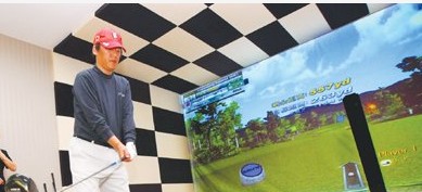 首家室内高尔夫球馆登陆靖江市,球馆安装模拟软件系统,当球手真实击杆时,投影幕布实时显示球在草坪上的飞行轨迹。图为桥会所室内高尔夫球馆的韩国教练正在调试系统