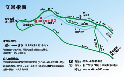 公交路线:宁波南站短途客运站乘宁波至溪口班车 (从6:00-18:20每5分钟一班),到溪口车站后,乘1路公交车,车票2元直达溪口360°景区或者选择出租车服务15元车费即到。(以上信息仅供参考)