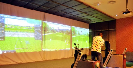 黑山高球会,装修高雅别致,采用先进的红外测速分析,高精确度,是在室内实现对高尔夫球运动的真实仿真。