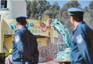 早上9点半,记者在现场看到,度假区综合行政执法大队工作人员正在搬离迷你高尔夫小楼里的物品。11点左右,物品搬完后,拆除机械进场开始工作。此次拆 除的违法建筑包括昆明哈乐休闲娱乐有限公司(下称“哈乐公司”)714平方米的违法建、构筑物以及海埂训练基地未自行拆除的违法建、构筑物。据悉,违法建 筑被拆除后,这里将建网球馆。